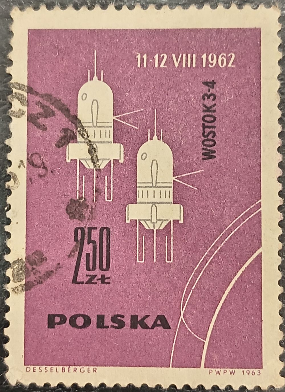 Польша 1963. Полет космических кораблей Восток 3 и 4. Марка из серии