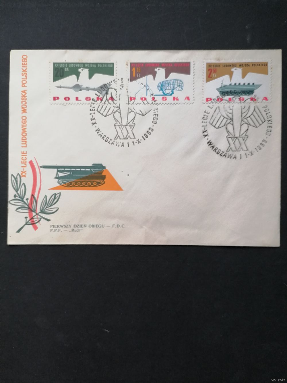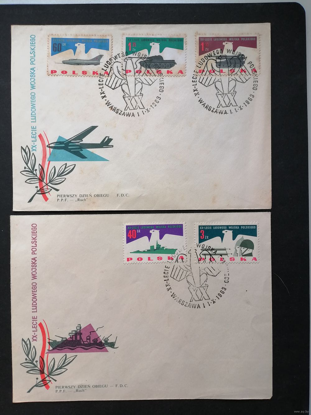Польша 1963 Три КПД с полной серией марок "20 лет Польской народной армии" (спецгашение) Mi.1425-1432 каталог 3.00 евро