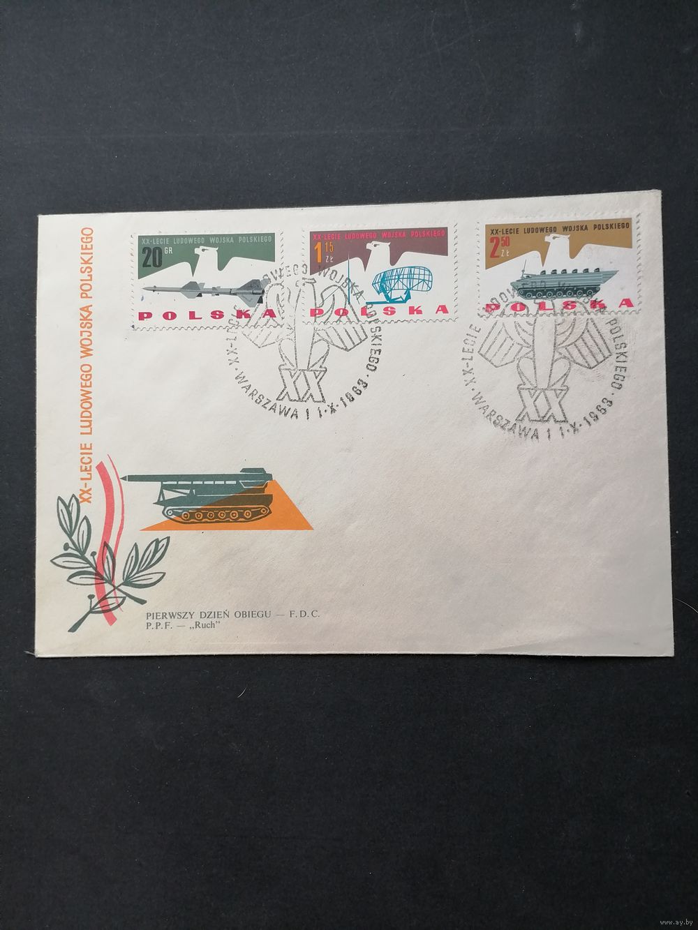 Польша 1963 Три КПД с полной серией марок "20 лет Польской народной армии" (спецгашение) Mi.1425-1432 каталог 3.00 евро