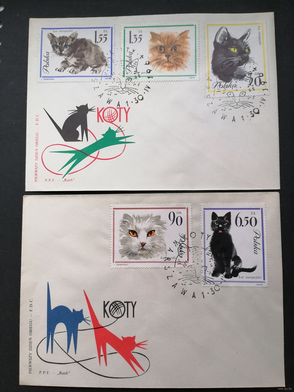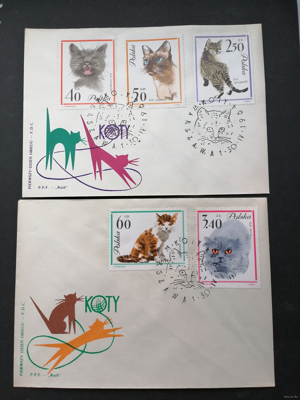 Польша 1964 Четыре КПД с полной серией марок "Коты" (спецгашение) Mi.1475-1484 каталог 16.00 евро