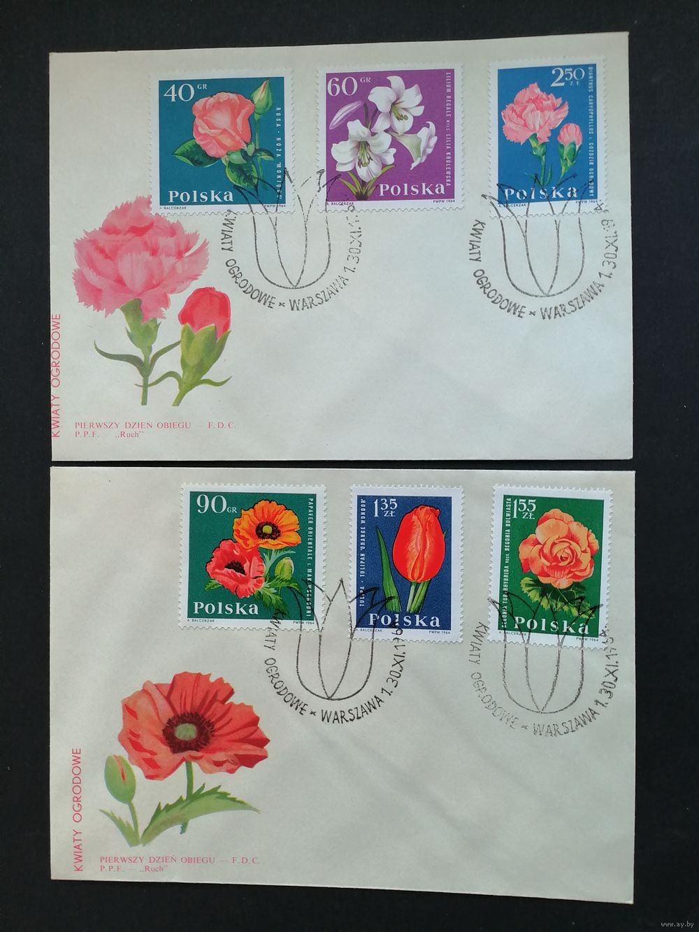 Польша 1964 Четыре КПД с полной серией марок "Садовые растения" (спецгашение) Mi.1541-1552 каталог 7.50 евро