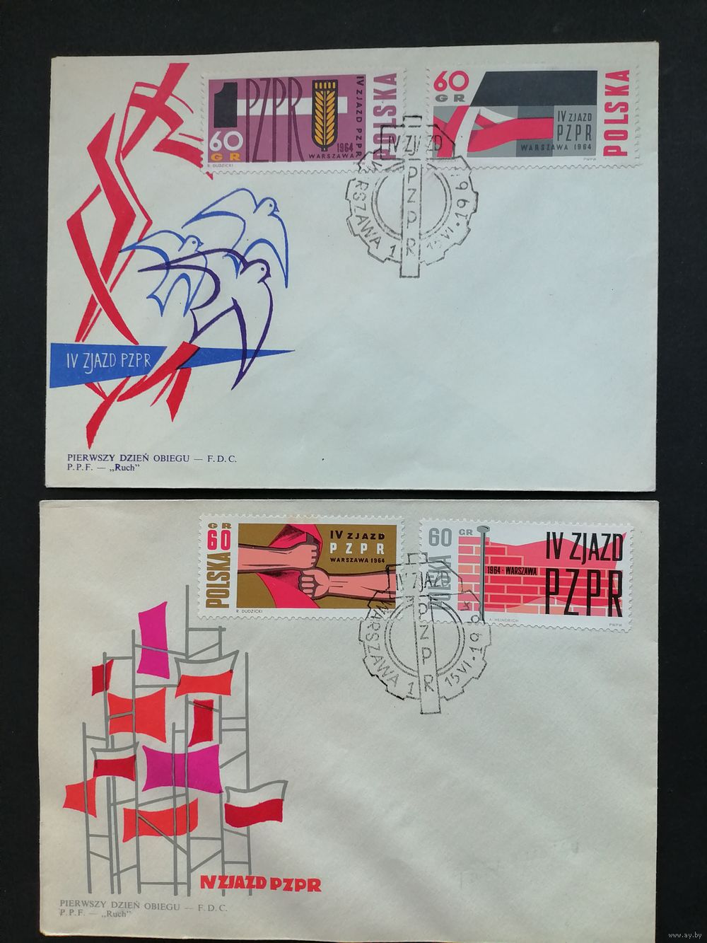 Польша 1964 Два КПД с полной серией марок "IV конгресс Польской объединенной рабочей партии" (спецгашение) Mi.1499-1502 каталог 1.00 евро