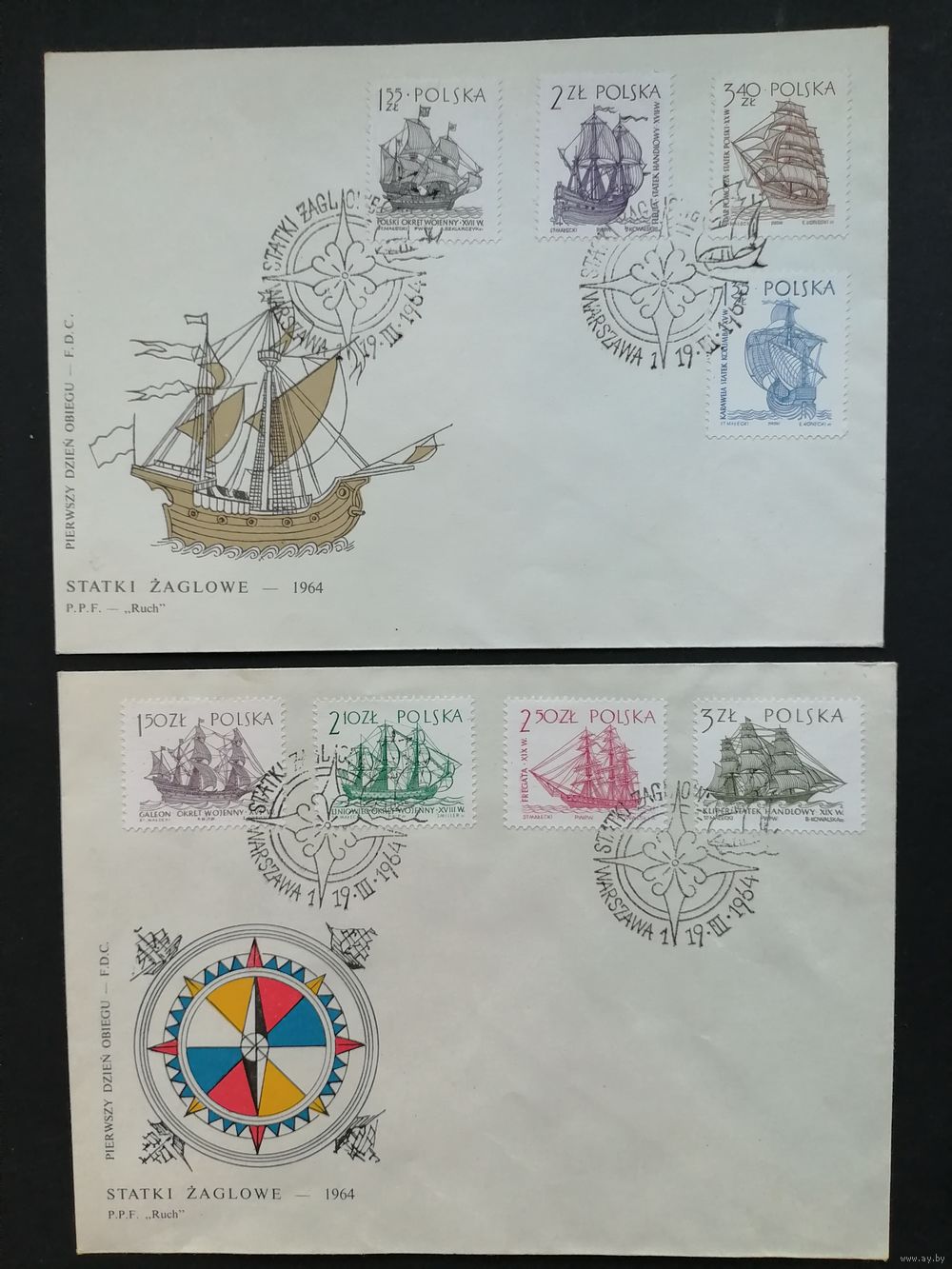 Польша 1964 Два КПД с полной серией марок "Парусники" (спецгашение) Mi.1465-1472 каталог 4.00 евро