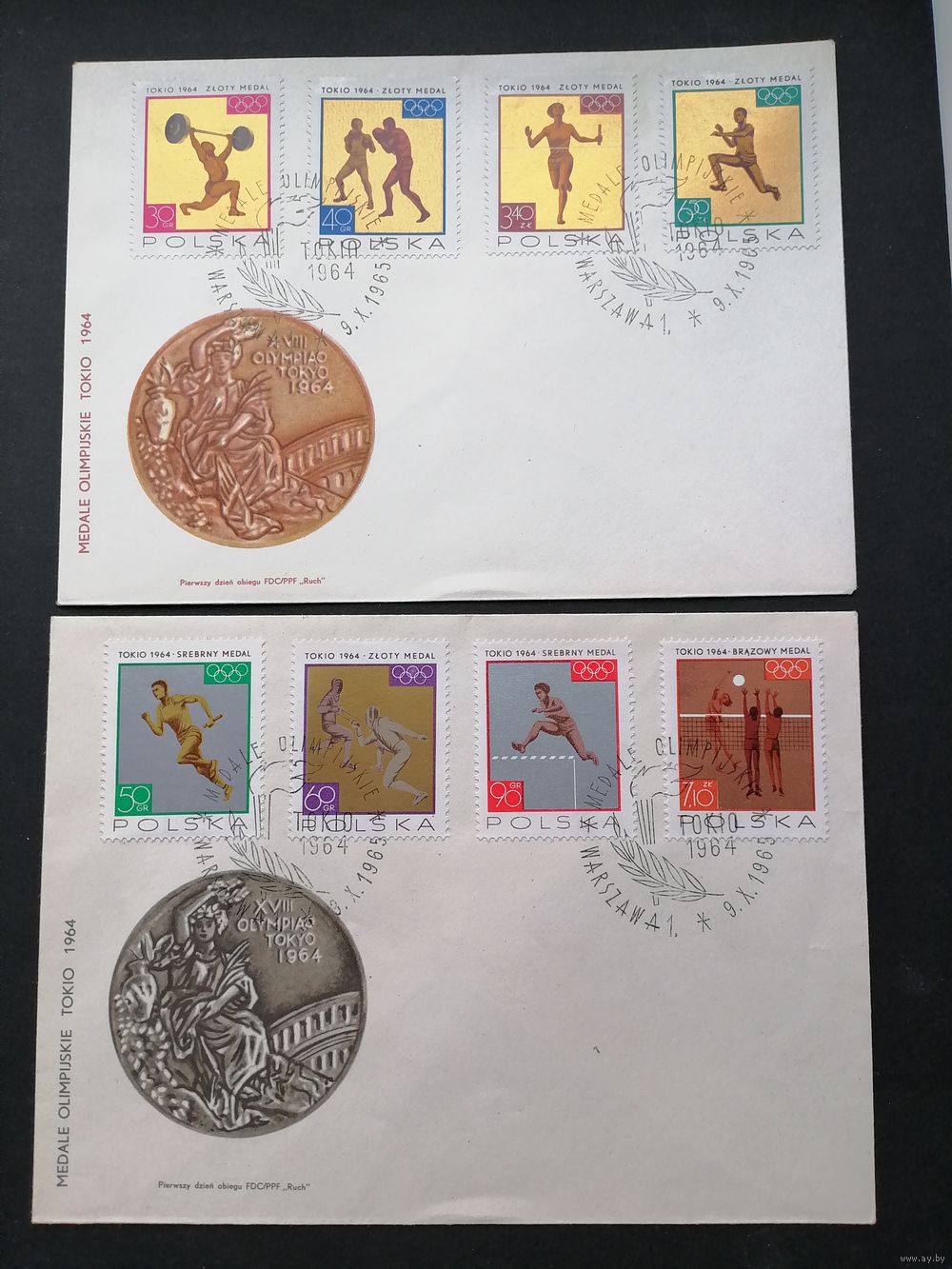 Польша 1964 Два КПД с полной серией марок "Польские медалисты Олимпийских игр в Токио" (спецгашение) Mi.1623-1630 каталог 5.00 евро