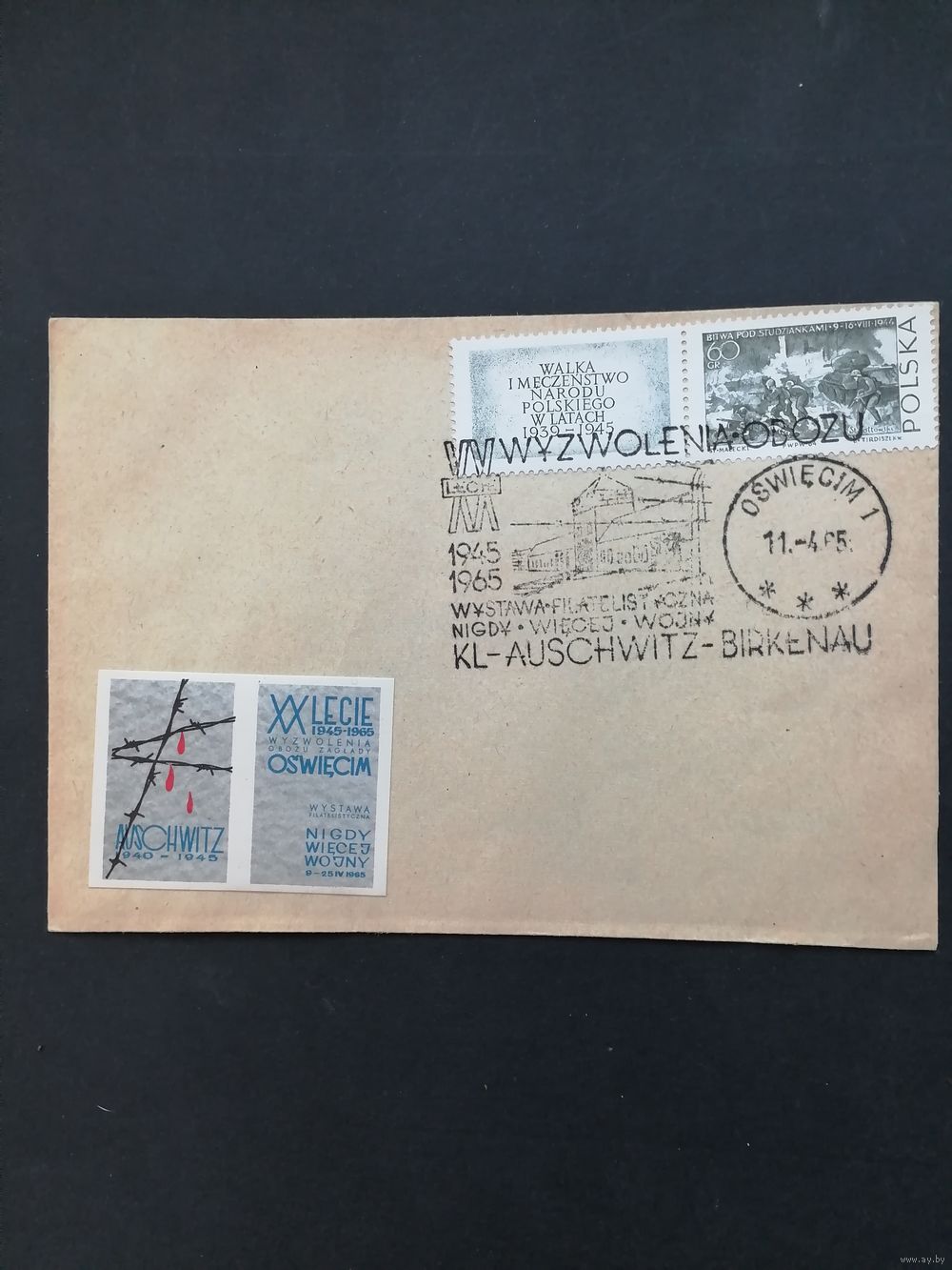 Польша 1964 Конверт с маркой из серии "Борьба и мученичество польского народа в годы фашисткой оккупации 1939-1945" (спецгашение 20-летие освобождения концентрационных лагерей) Mi.1537