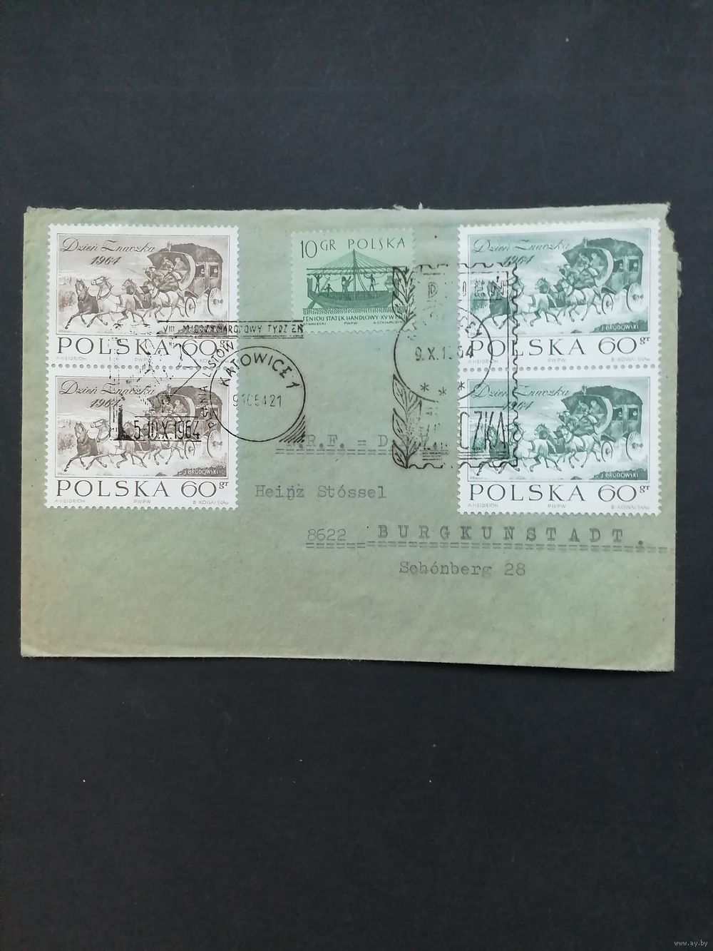 Польша 1964 Конверт с полной серией марок "День почтовой марки" (спецгашение и простое гашение) Mi.1530-1531 каталог 1.00 евро