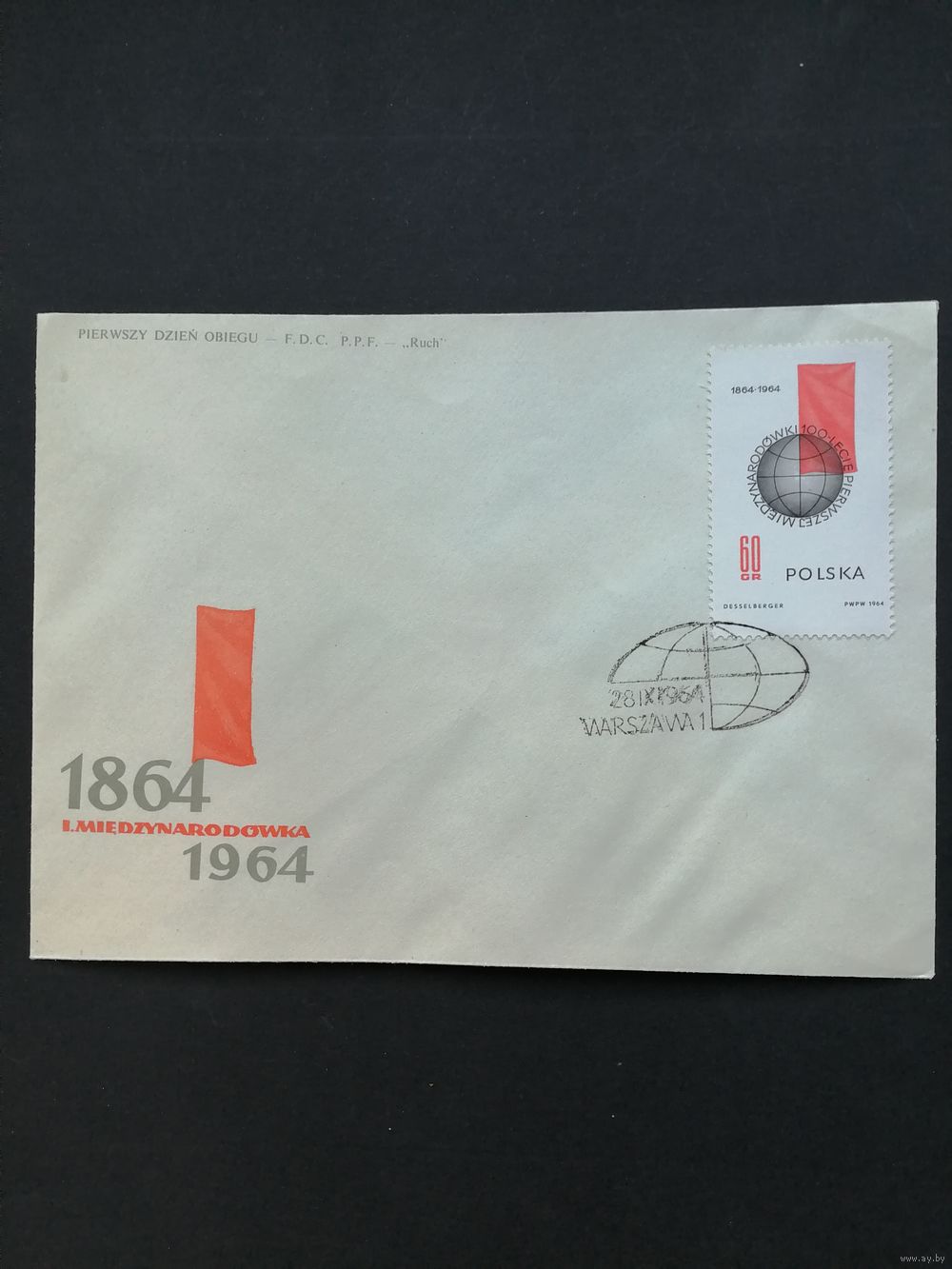 Польша 1964 КПД с маркой "100 лет со дня основания Первого Интернационала" (спецгашение) Mi.1529 каталог 0.70 евро
