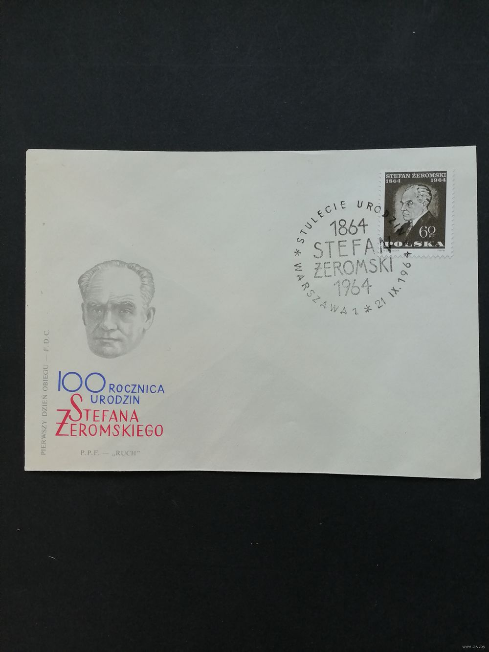 Польша 1964 КПД с маркой "100 лет со дня рождения Штефана Жеромского" (спецгашение) Mi.1527 каталог 0.70 евро