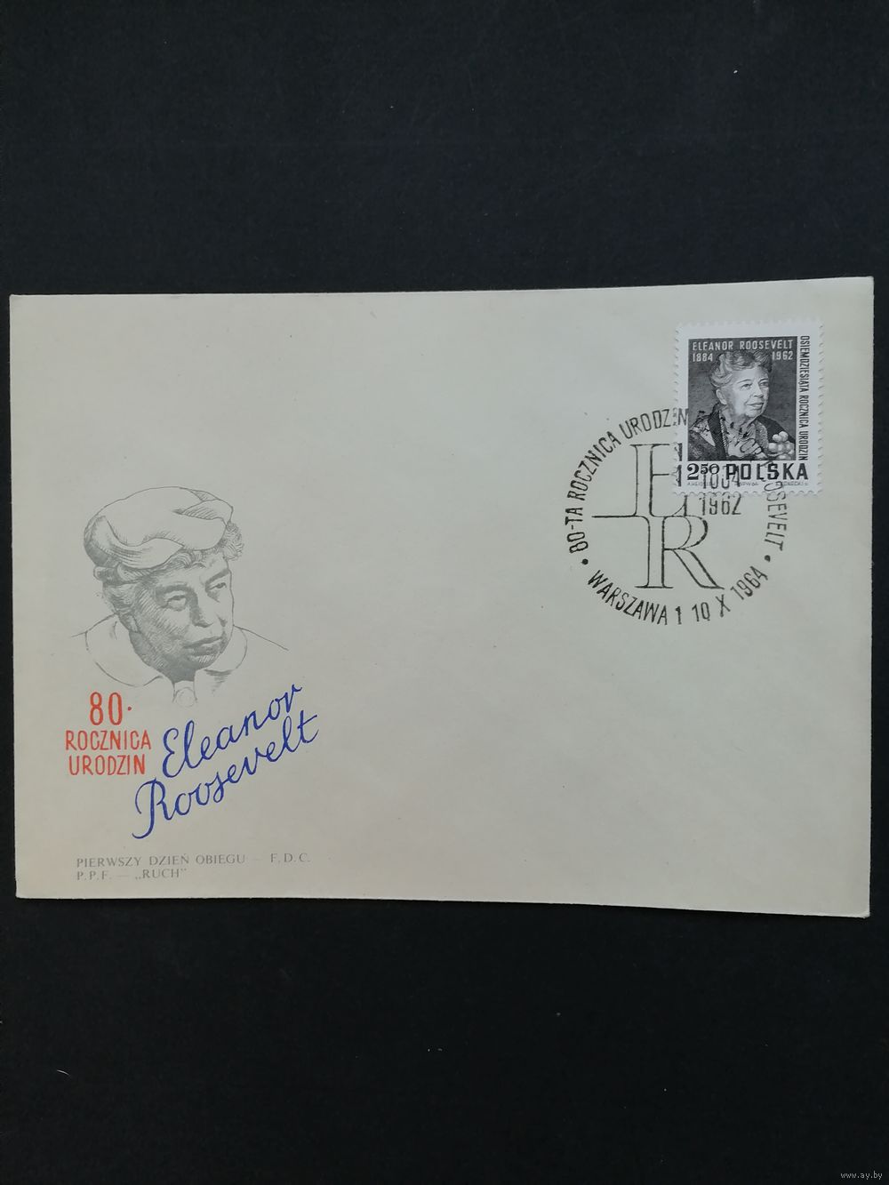 Польша 1964 КПД с маркой "80 лет со дня рождения Элеоноры Рузвельт" (спецгашение) Mi.1532 каталог 0.70 евро