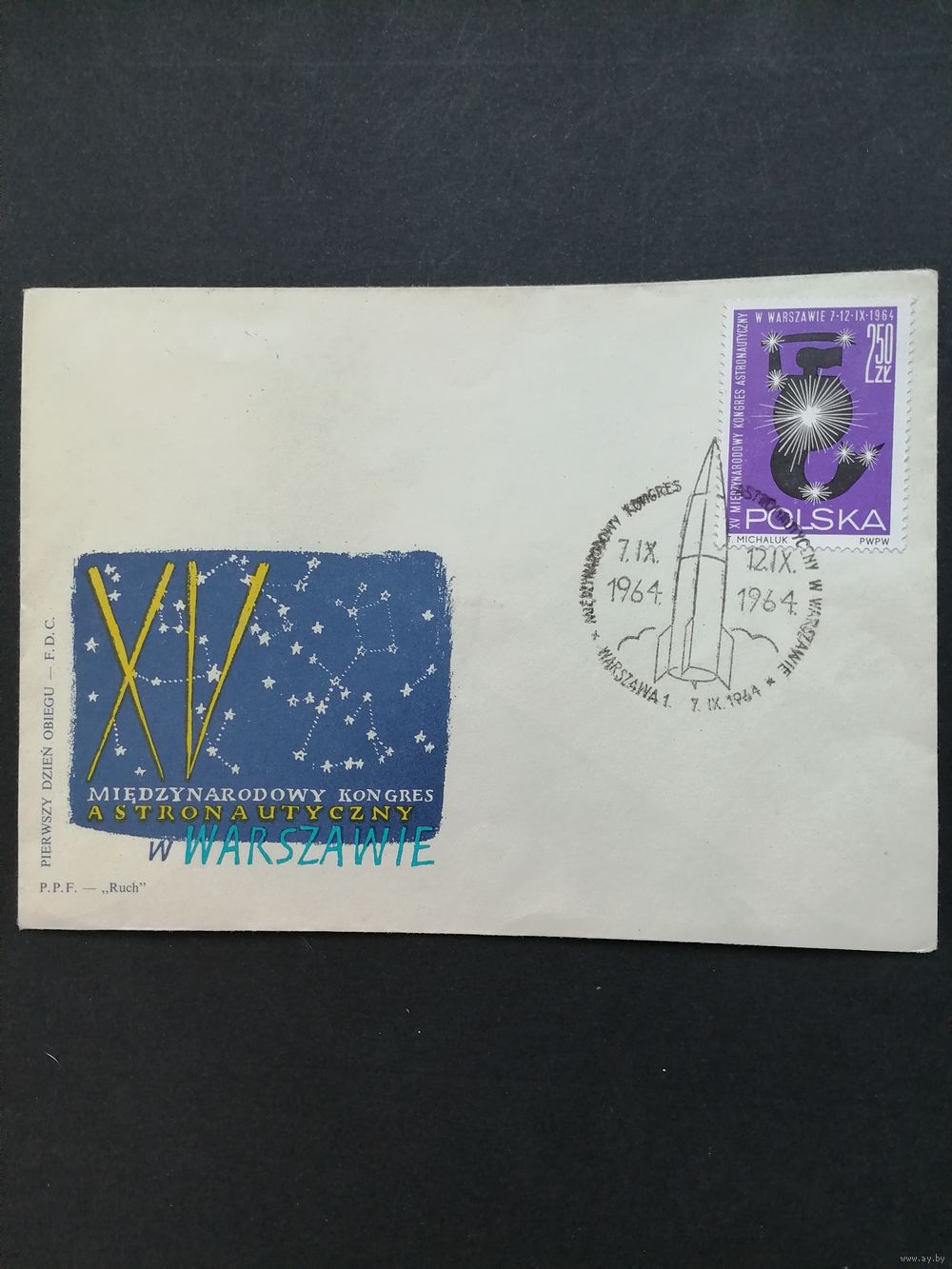 Польша 1964 КПД с маркой "XV международный конгресс по астронавтике в Варшаве" (спецгашение) Mi.1526 каталог 1.20 евро