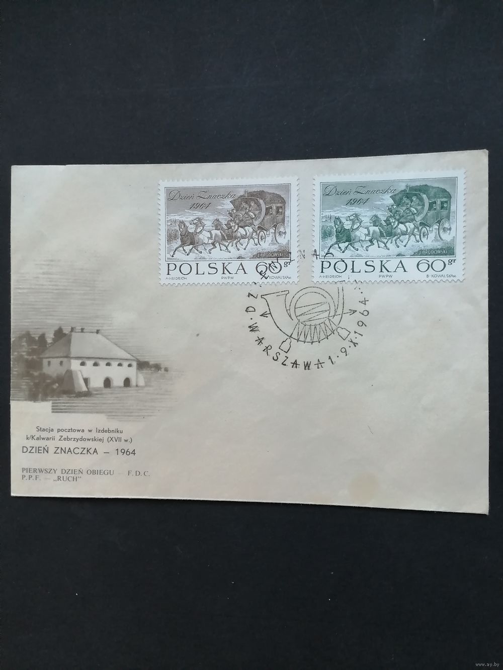 Польша 1964 КПД с полной серией марок "День почтовой марки" (спецгашение) Mi.1530-1531 каталог 1.00 евро