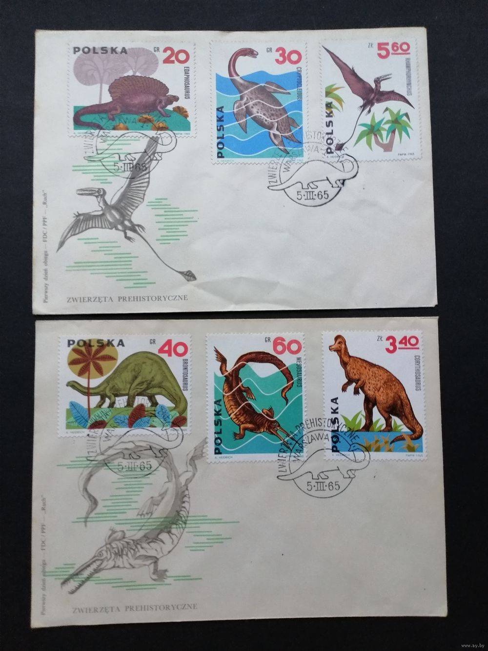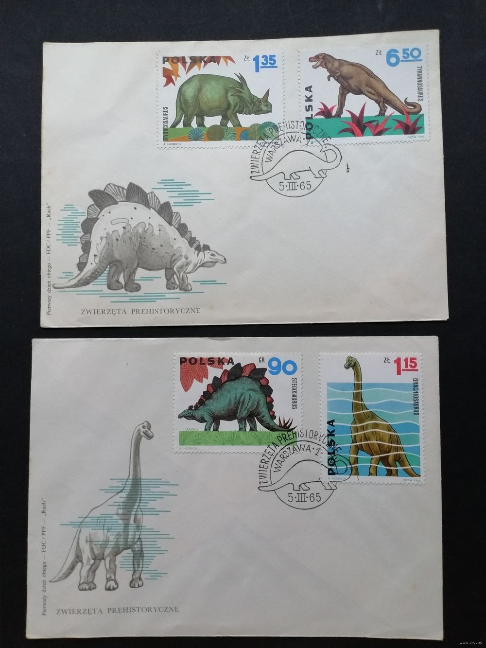 Польша 1965 Четыре КПД с полной серией марок "Доисторические животные" (спецгашение) Mi.1570-1579 каталог 10.00 евро