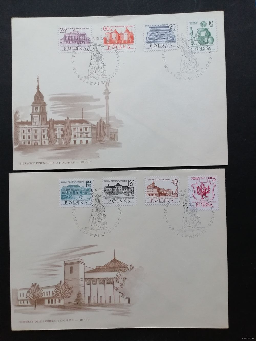 Польша 1965 Два КПД с полной серией марок "700 лет Варшаве" (спецгашение) Mi.1597-1604 каталог 2.00 евро