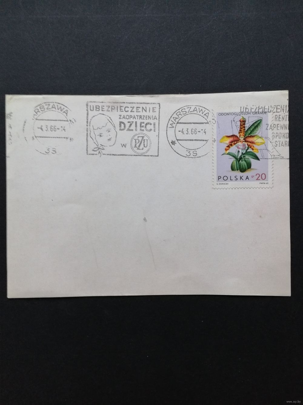 Польша 1965 Фотокарточка с маркой из серии "Орхидеи" (спецгашение посвященное польской организации обеспечения детей) Mi.1612