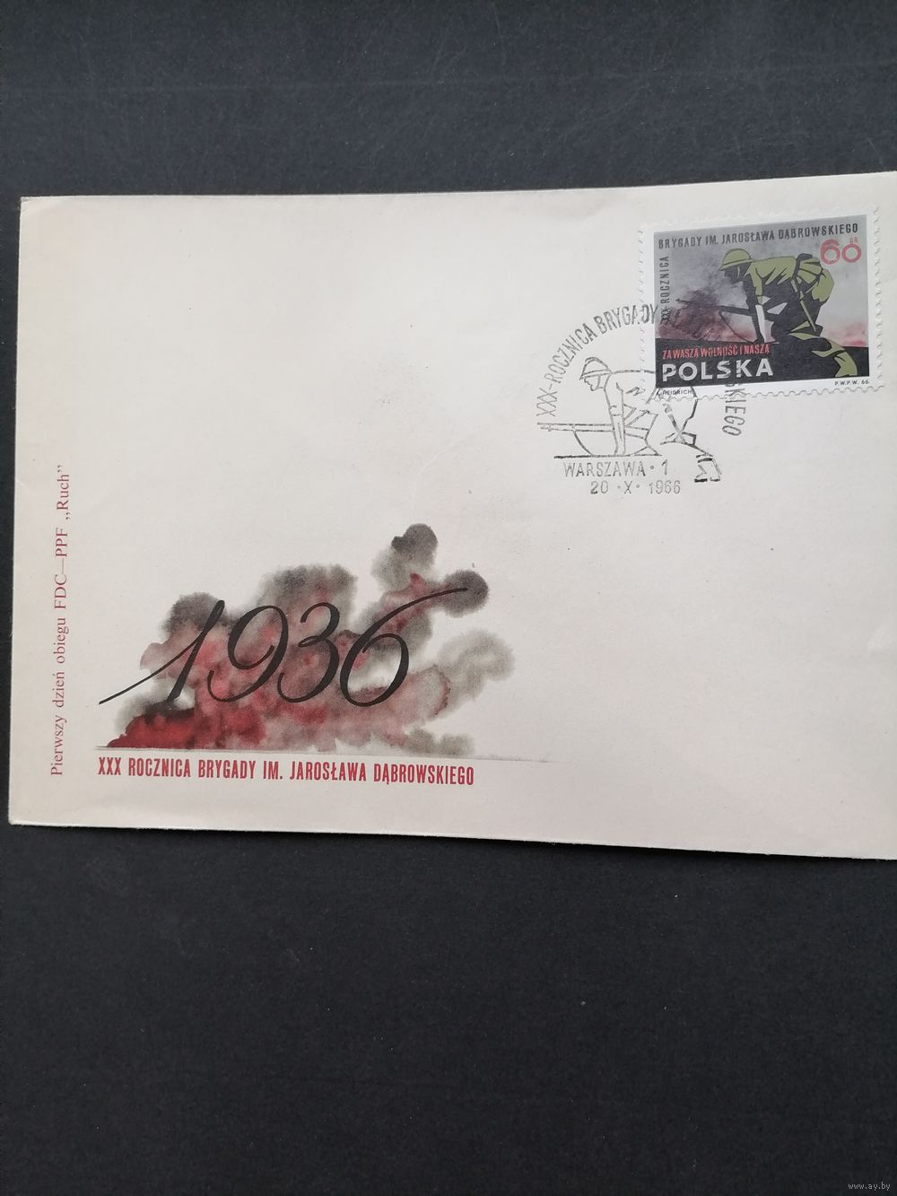 Польша 1966 КПД с маркой "30-летие вступления интернациональных бригад в борьбу против фашизма в гражданской войне в Испании" (спецгашение) Mi.1717 каталог 0.70 евро