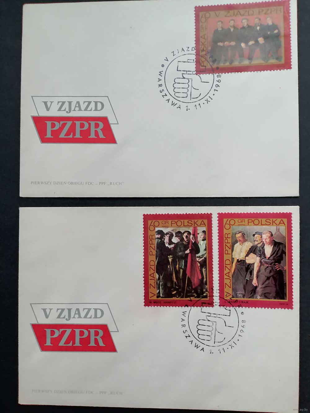 Польша 1968 Два КПД с полной серией марок "V съезд Польской объединенной рабочей партии" (спецгашение) Mi.1882-1884 каталог 0.70 евро