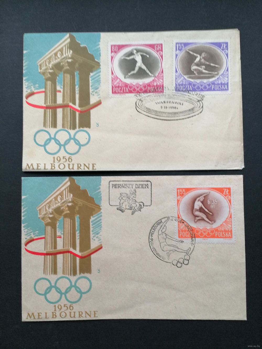Польша 1970 Два КПД с неполной серией марок "Олимпийские игры в Мельбурне" (спецгашение) Mi.988-989,994 каталог 7.90 евро