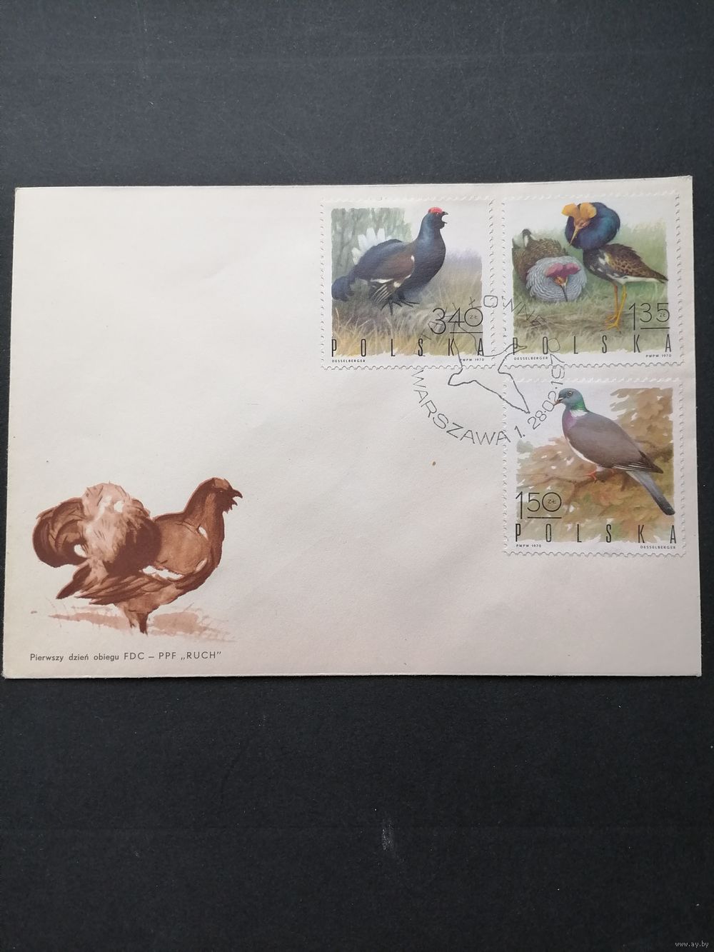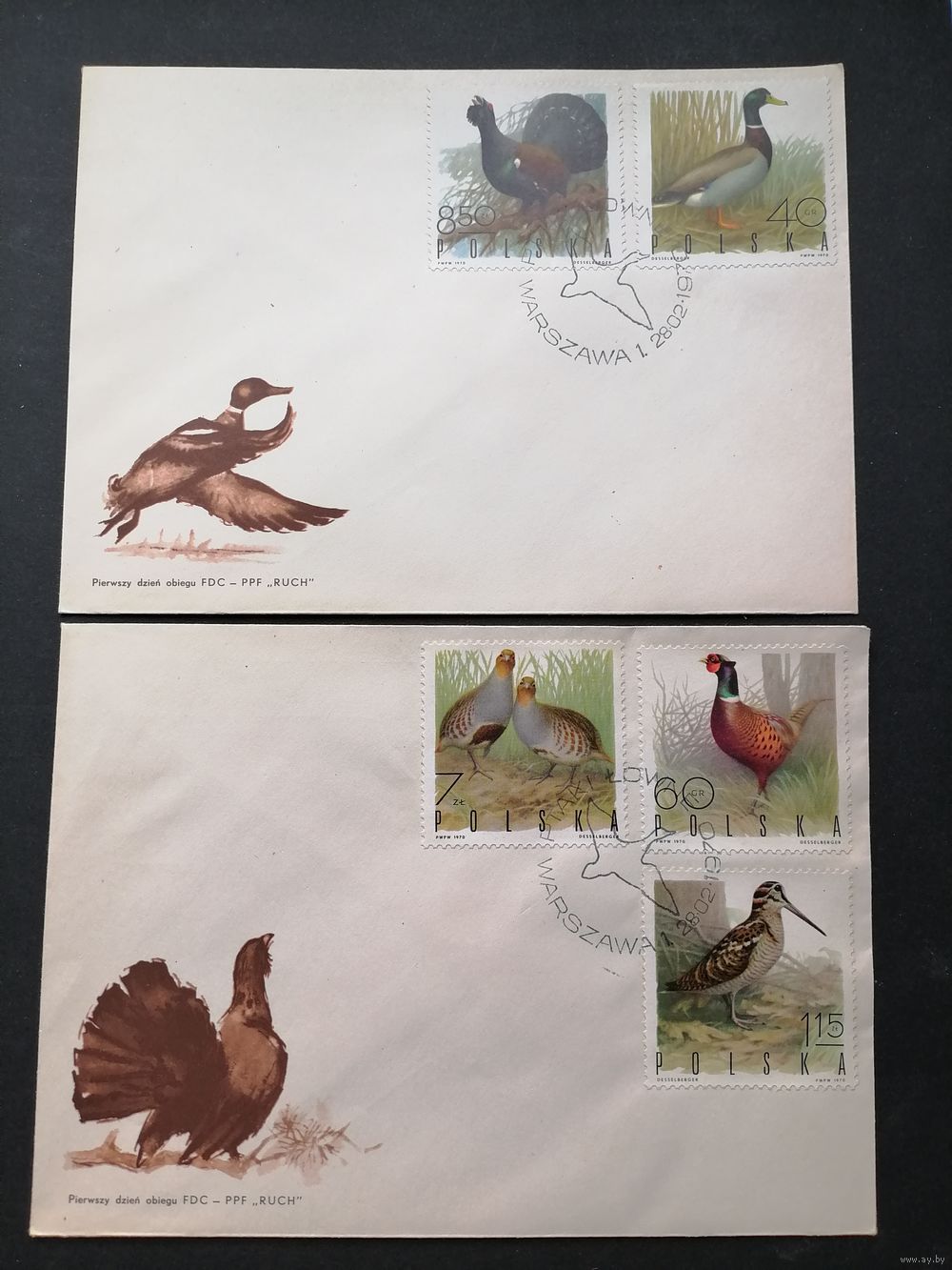 Польша 1970 Три КПД с полной серией марок "Птицы пригодные для охоты" (спецгашение) Mi.1988-1995 каталог 11.00 евро