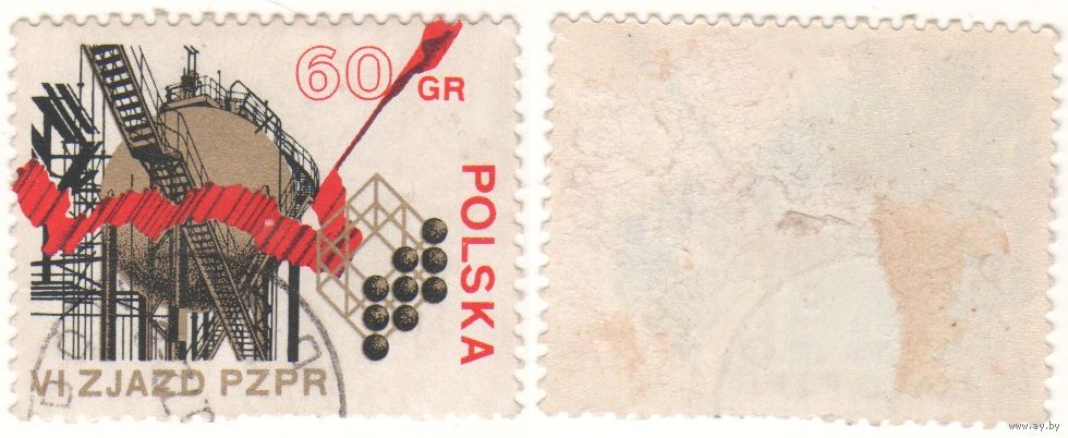 Польша 1971-12 2125 марка из блока VI съезд ПОРП 60gr k-072 (a1-08 ТОРГ/ВАША ЦЕНА