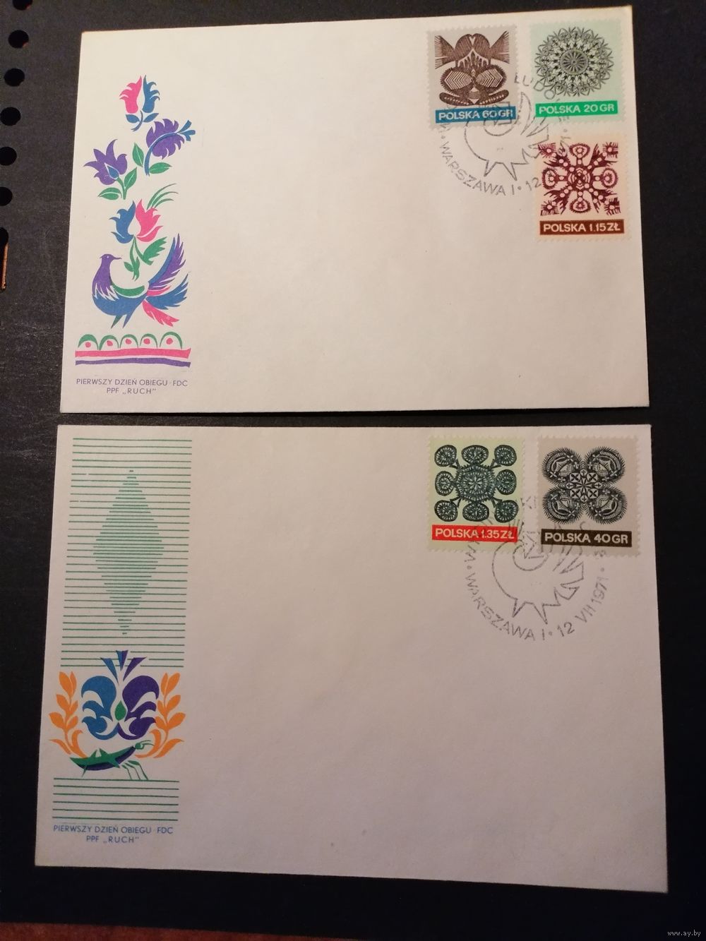 Польша 1971 Два КПД с полной серией марок "Польское народное творчество: силуэты" (спецгашение) Mi.2092-2096 каталог 1.00 евро