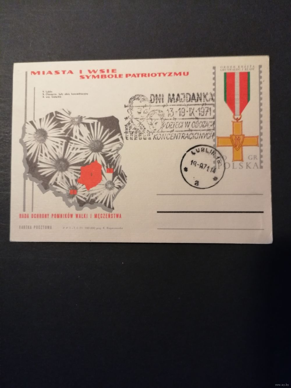 Польша 1971 Почтовая карточка посвященная местам и символам патриотизма с типографской маркой (спецгашение Дни Майданека)