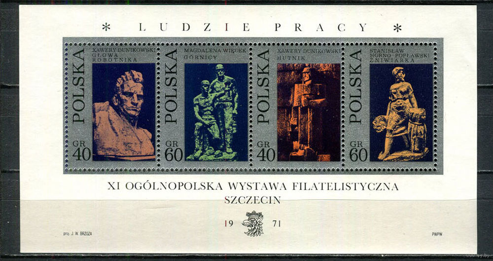 Польша - 1971 - Скульптуры - (незнач. пятно на клее) - [Mi. bl. 46] - полная серия - 1 блок. MNH. (Лот 45JF)-TG2P17