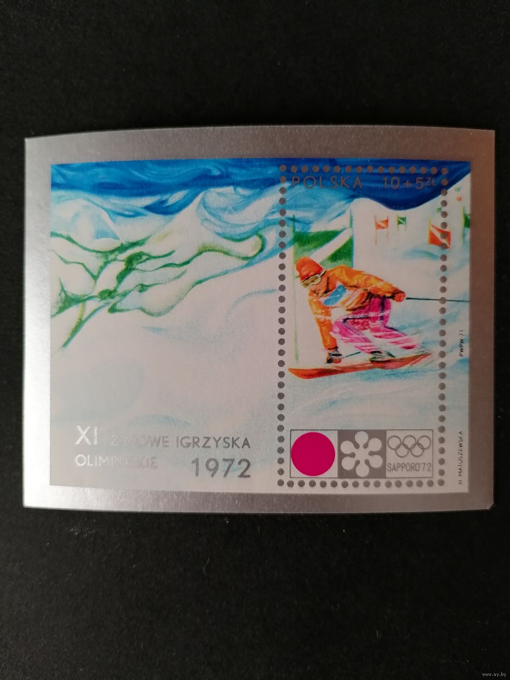 Польша 1972 Блок Mi.49 с маркой "Зимние олимпийские игры в Саппоро" (чистый**) марка Mi.2147 каталог 4.00 евро