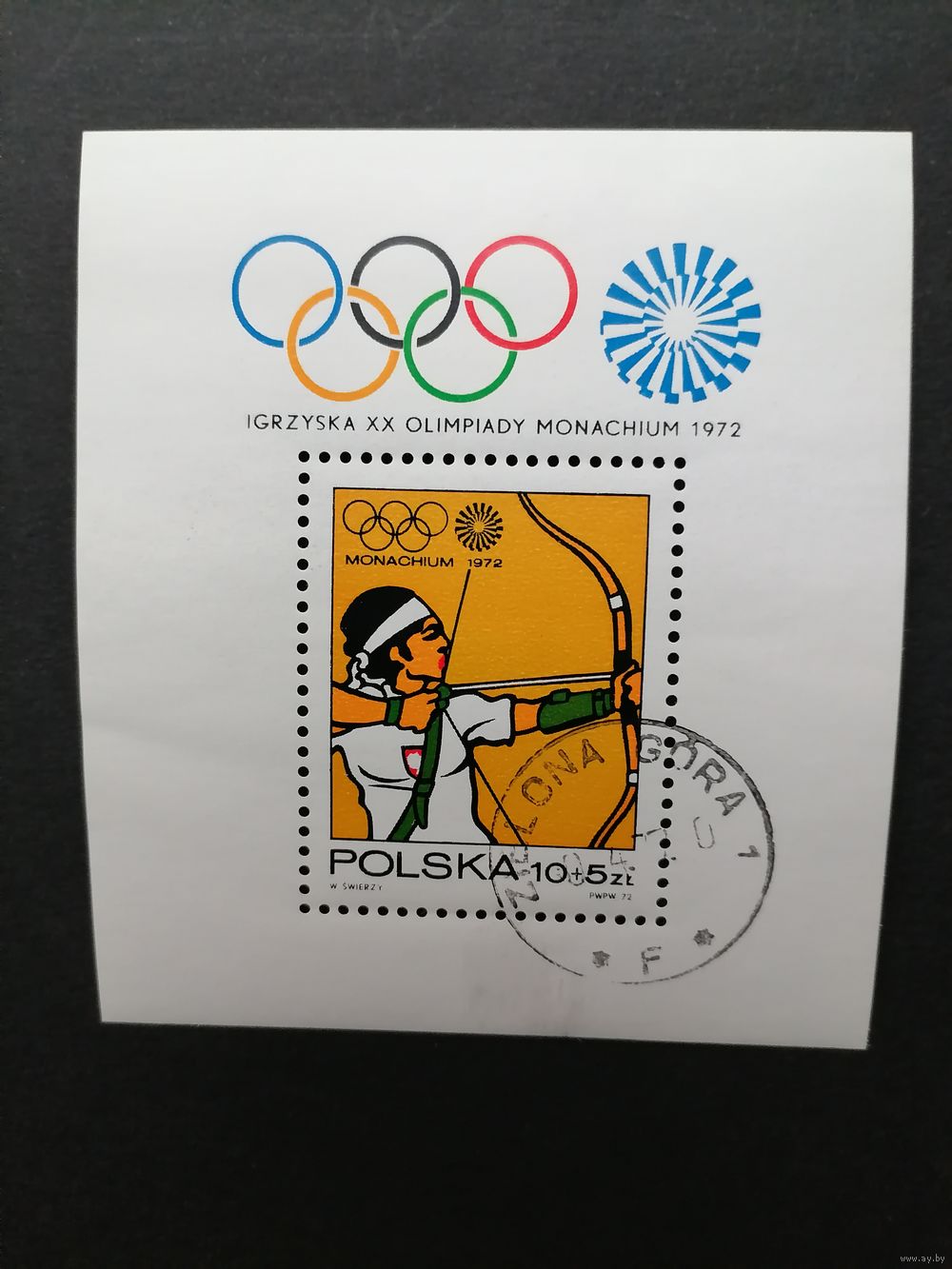 Польша 1972 Блок Mi.51 с маркой "Летние олимпийские игры в Мюнхене" (гашение с клеем) марка Mi.2157 каталог 1.20 евро