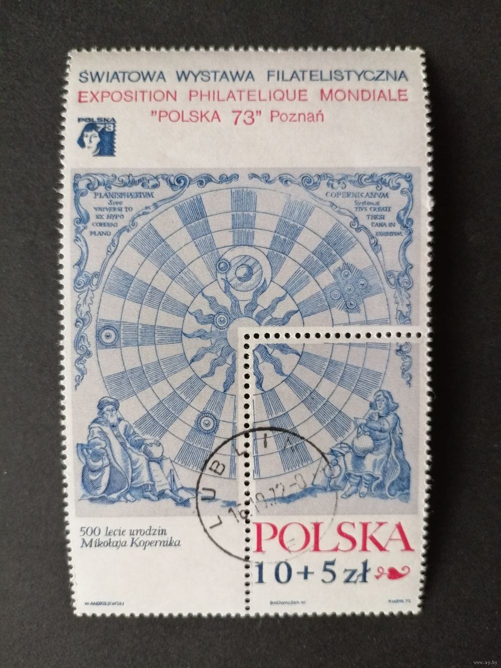 Польша 1972 Блок Mi.52 с маркой "Всемирная филателистическая выставка в Познани "POLSKA 73" к 500-летию со дня рождения Николая Коперника" (гашение с клеем) марка Mi.2186 каталог 2.00 евро