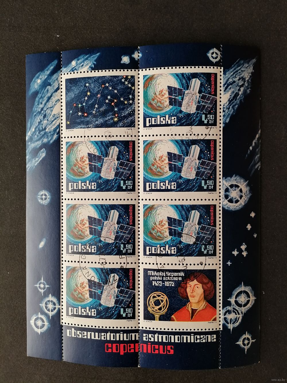 Польша 1973 Блок Mi.54 с 6 марками и 2 купонами "Космические исследования: американская опытная станция "COPERNICUS"" (гашение с клеем) марка Mi.2256 каталог 5.00 евро
