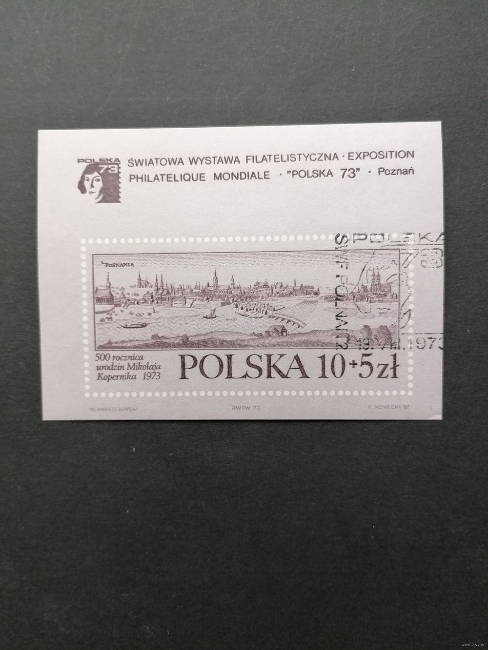 Польша 1973 Блок Mi.56 с маркой "Всемирная филателистическая выставка в Познани "POLSKA 73" к 500-летию со дня рождения Николая Коперника" (гашение с клеем) марка Mi.2264 каталог 7.50 евро