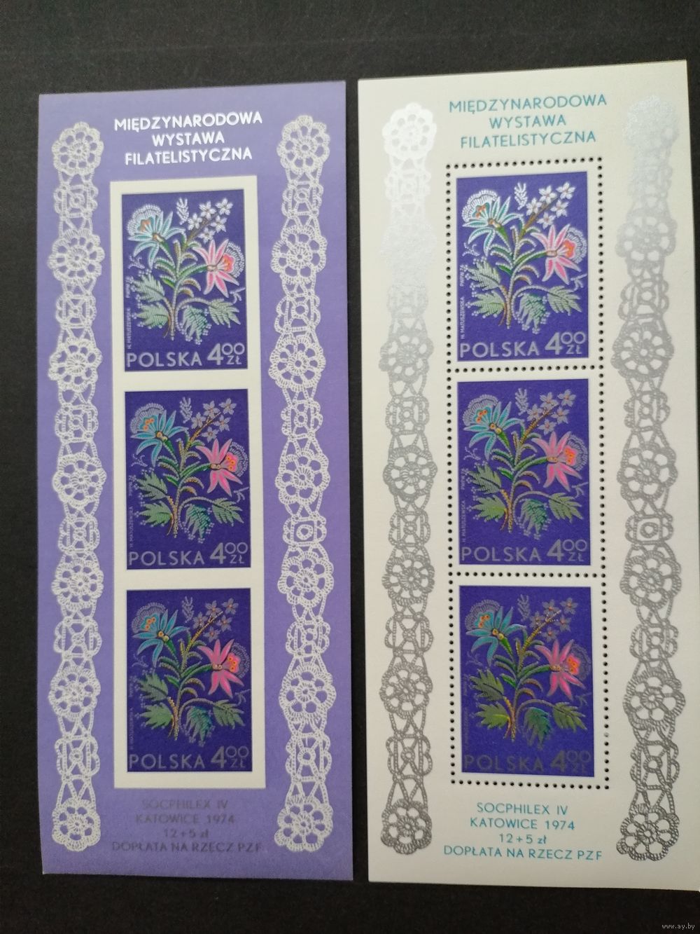 Польша 1974 Блоки Mi.57 и Mi.58, каждый с 3 марками из серии "Международная филателистическая выставка "SOCPHILEX IV" в Катовице" (чистые**) марки Mi.2311А и 2311В каталог 11.00 евро