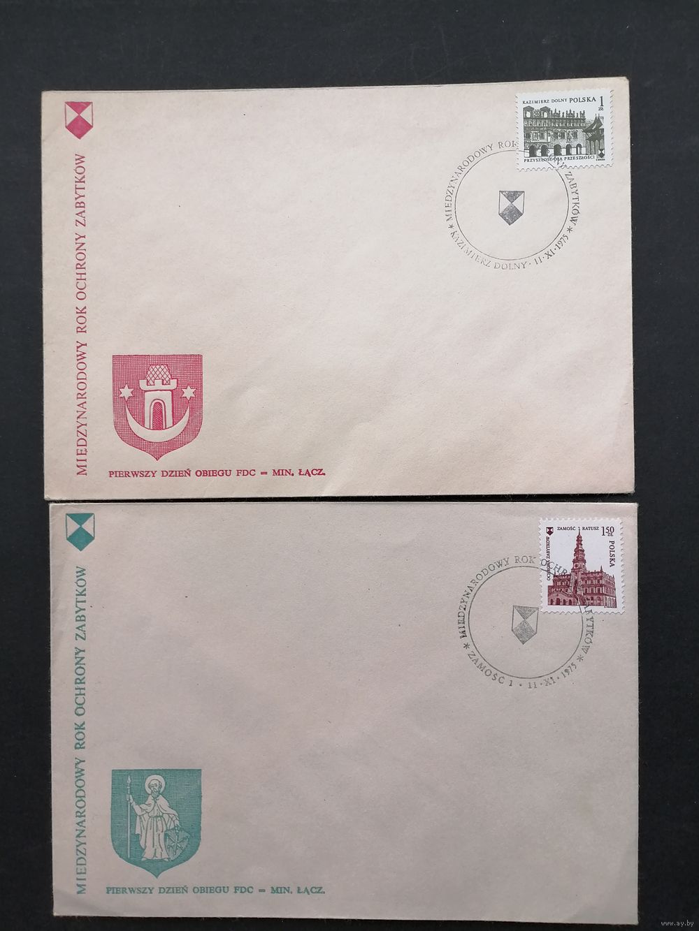 Польша 1975 Два КПД с полной серией марок "Год защиты архитектурных памятников в Европе" (спецгашение) Mi.2413-2414 каталог 1.00 евро