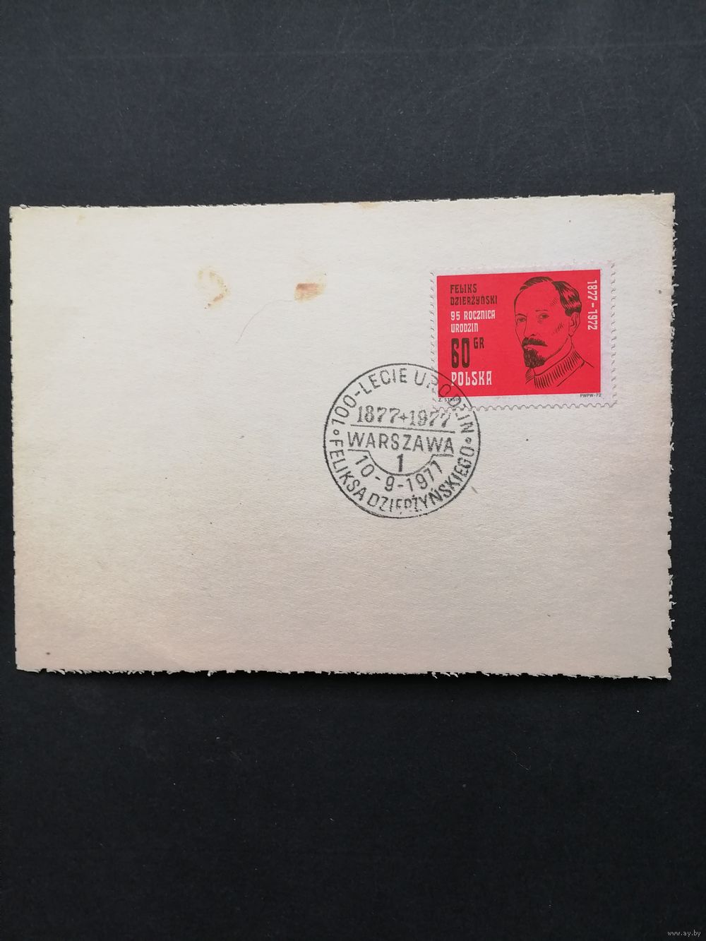 Польша 1977 Карточка с маркой "95 лет со дня рождения Феликса Эдмундовича Дзержинского" (спецгашение к 100-летию со дня рождения Ф. Э. Дзержинского) Mi.2172