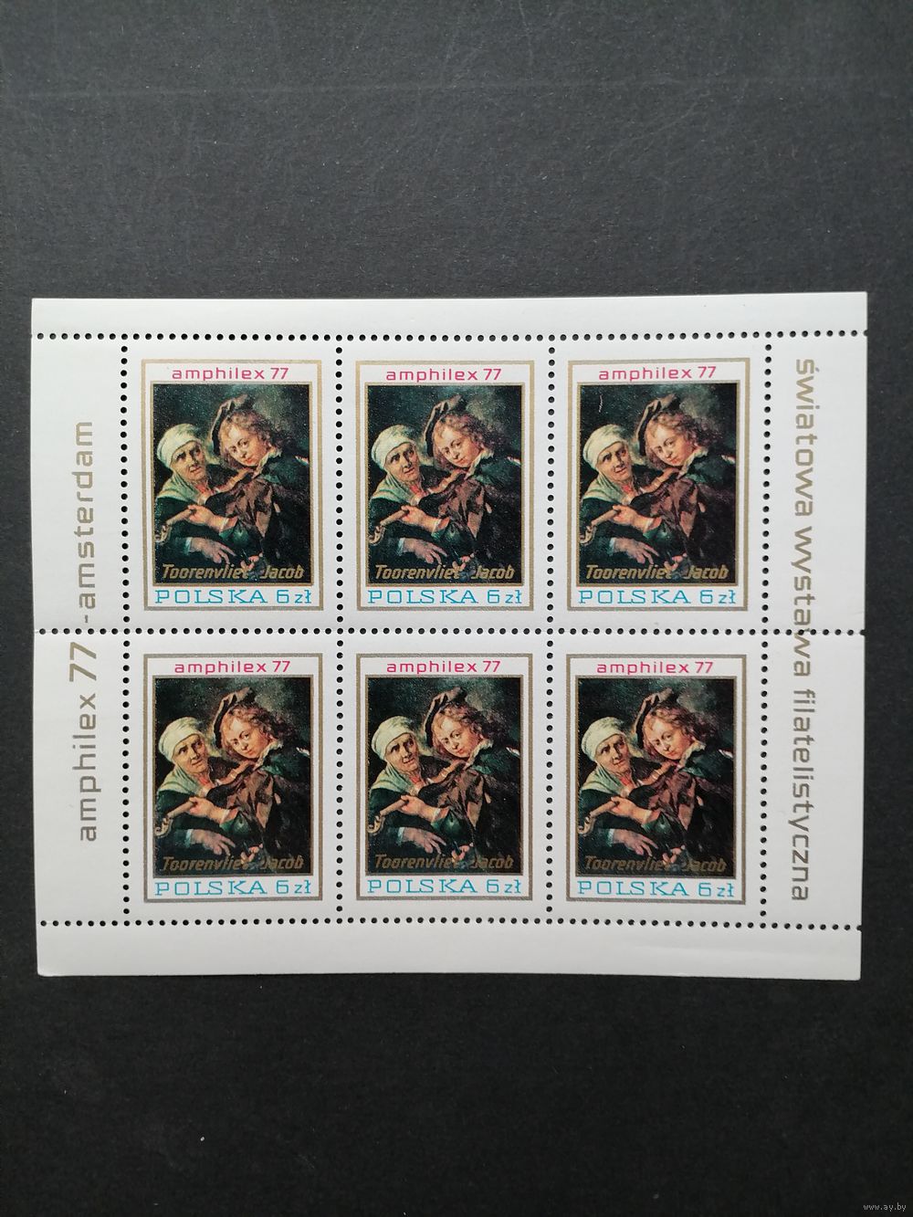Польша 1977 Малый лист с 6 марками "Международная филателистическая выставка "AMPHILEX 77" в Амстердаме" (чистый**) Mi.2508 каталог 5.00 евро