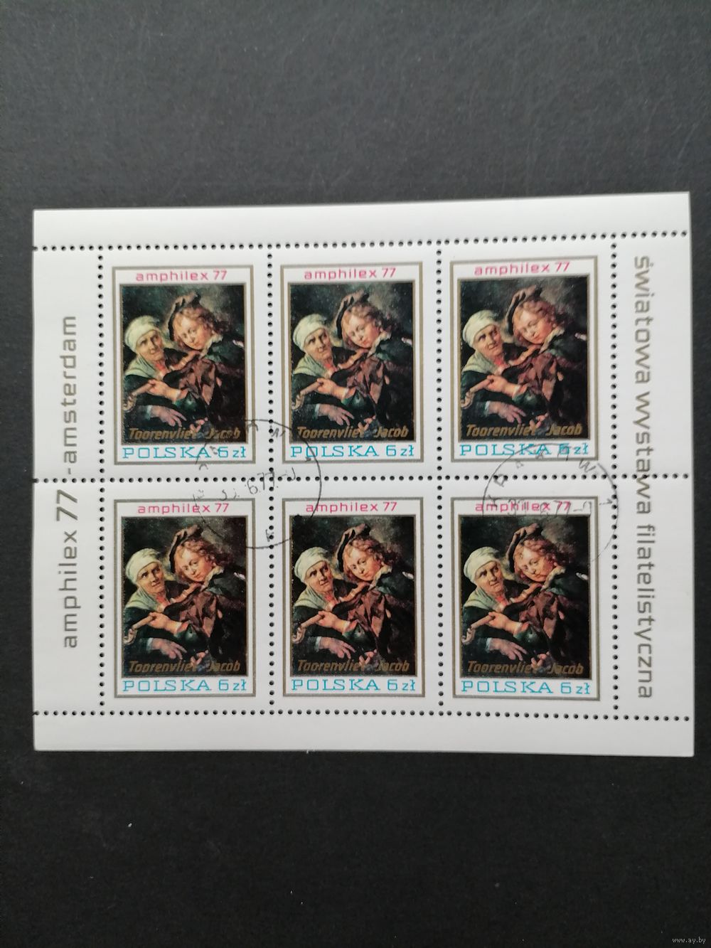 Польша 1977 Малый лист с 6 марками "Международная филателистическая выставка "AMPHILEX 77" в Амстердаме" (гашение с клеем) Mi.2508 каталог 3.50 евро