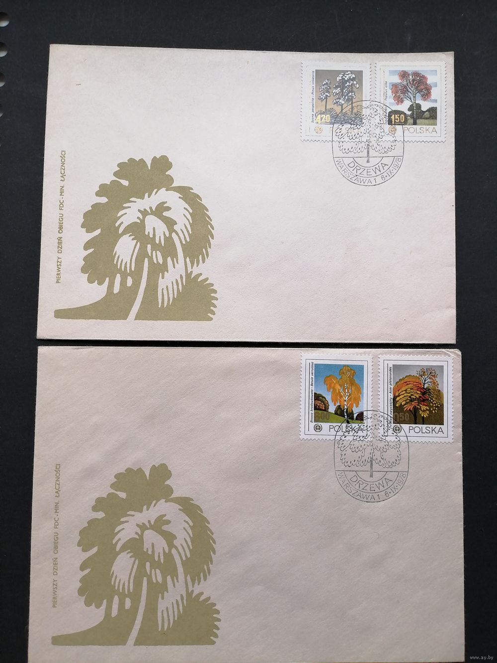 Польша 1978 Два КПД с неполной серией марок "Природный заповедник: деревья" (спецгашение) Mi.2569,2571-2572,2574 каталог 1.70 евро