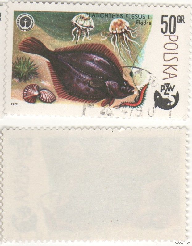 Польша 1979.04.26 (Mi)PL2616 марка из сер.100-летие спортивного рыболовства 50gr Европейская камбала (Platichthys flesus) (г) (a1-16 ТОРГ/ВАША ЦЕНА