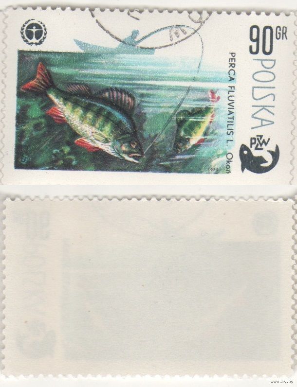 Польша 1979.04.26 (Mi)PL2617 марка из сер.100-летие спортивного рыболовства 90gr Европейский окунь (Perca fluviatilis) (г) (a1-16 ТОРГ/ВАША ЦЕНА