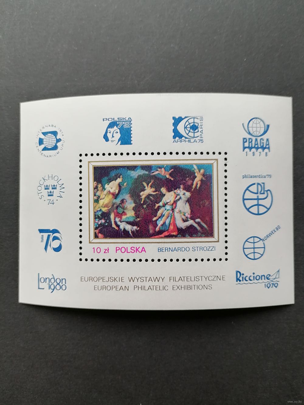 Польша 1979 Блок Mi.78 с маркой "Интернациональные филателистические выставки в Европе" (чистые**) марка Mi.2643 каталог 1.50 евро