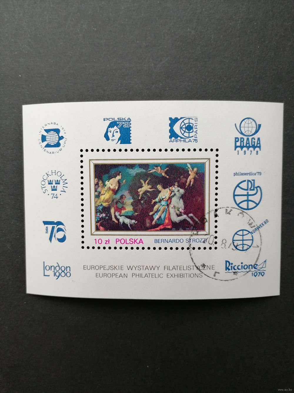 Польша 1979 Блок Mi.78 с маркой "Интернациональные филателистические выставки в Европе" (гашение с клеем) марка Mi.2643 каталог 1.00 евро