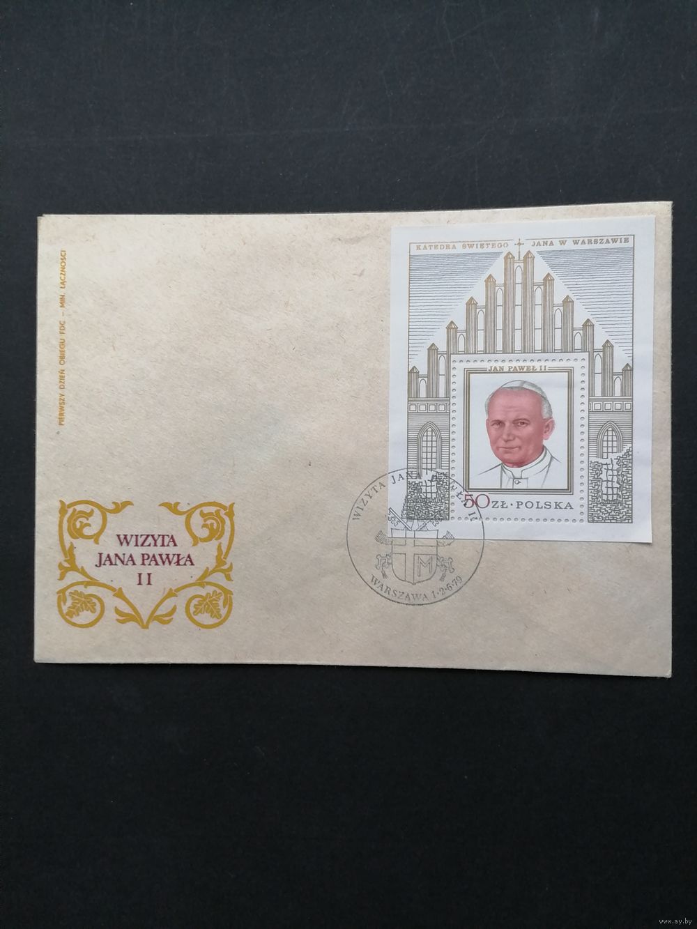 Польша 1979 Два КПД с блоками Mi.75 (gold) с маркой "Визит Папы римского Павла Иоанна II в Польшу" (спецгашение) марка Mi.2631 каталог 15.00 евро