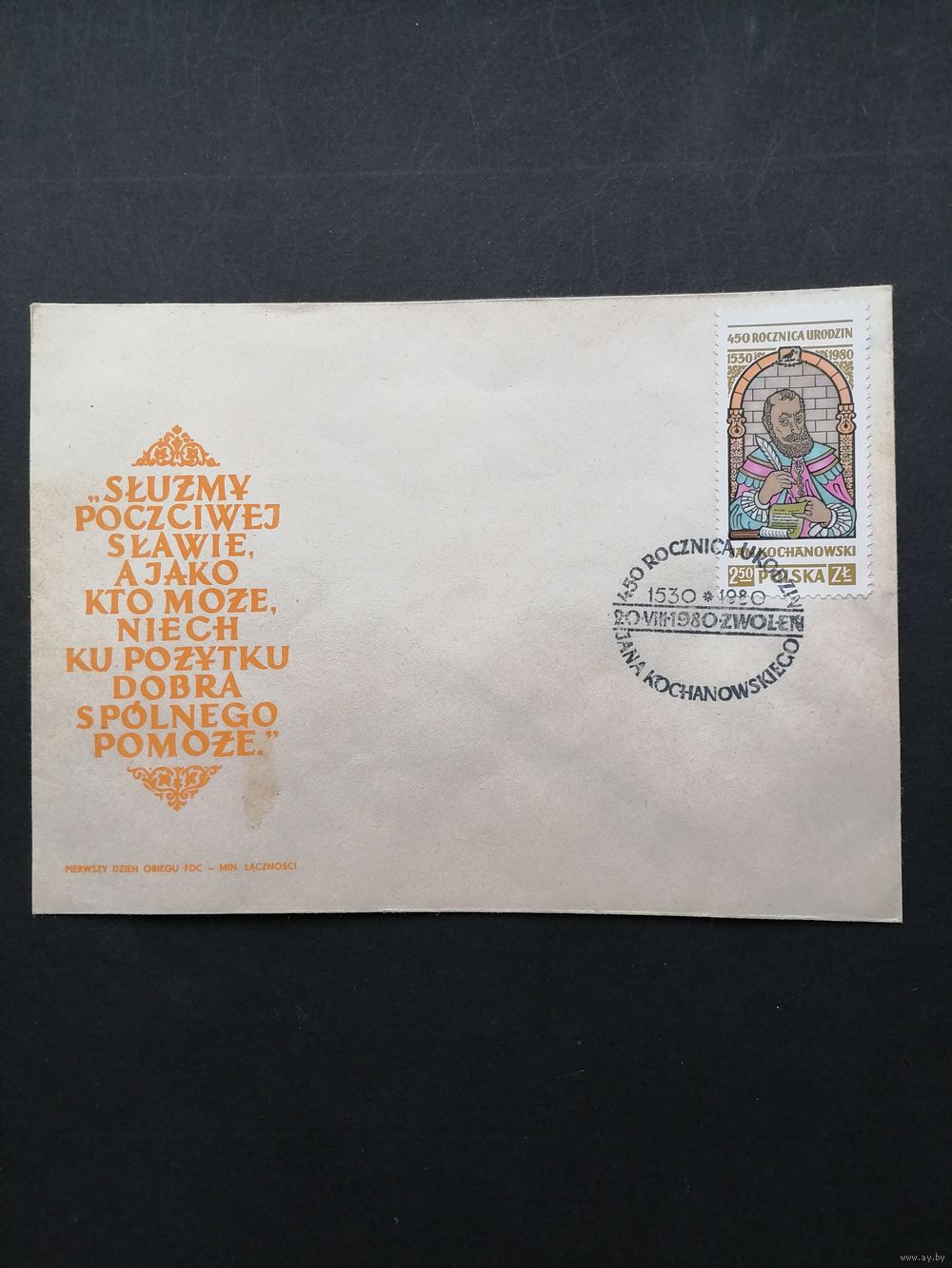 Польша 1980 КПД с маркой "450 лет со дня рождения Яна Кочановского" (спецгашение) Mi.2712 каталог 0.50 евро
