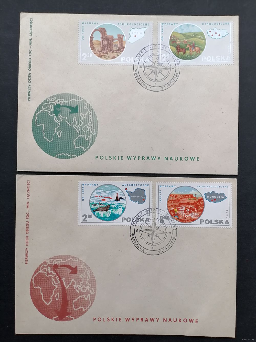 Польша 1980 Три КПД с полной серией марок "Научные экспедиции" (спецгашение) марки Mi.2686-2691 каталог 3.50 евро