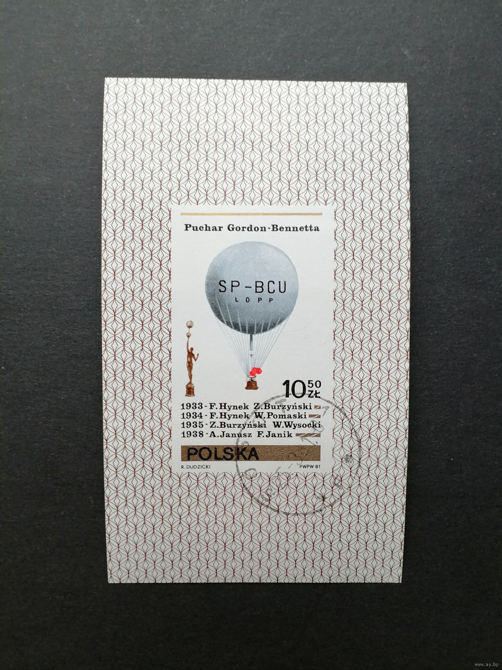 Польша 1981 Блок Mi.85 с маркой "Чемпионат по воздушным шарам на кубок Гордона Беннета" (гашение с клеем) Mi.2735 каталог 1.20 евро