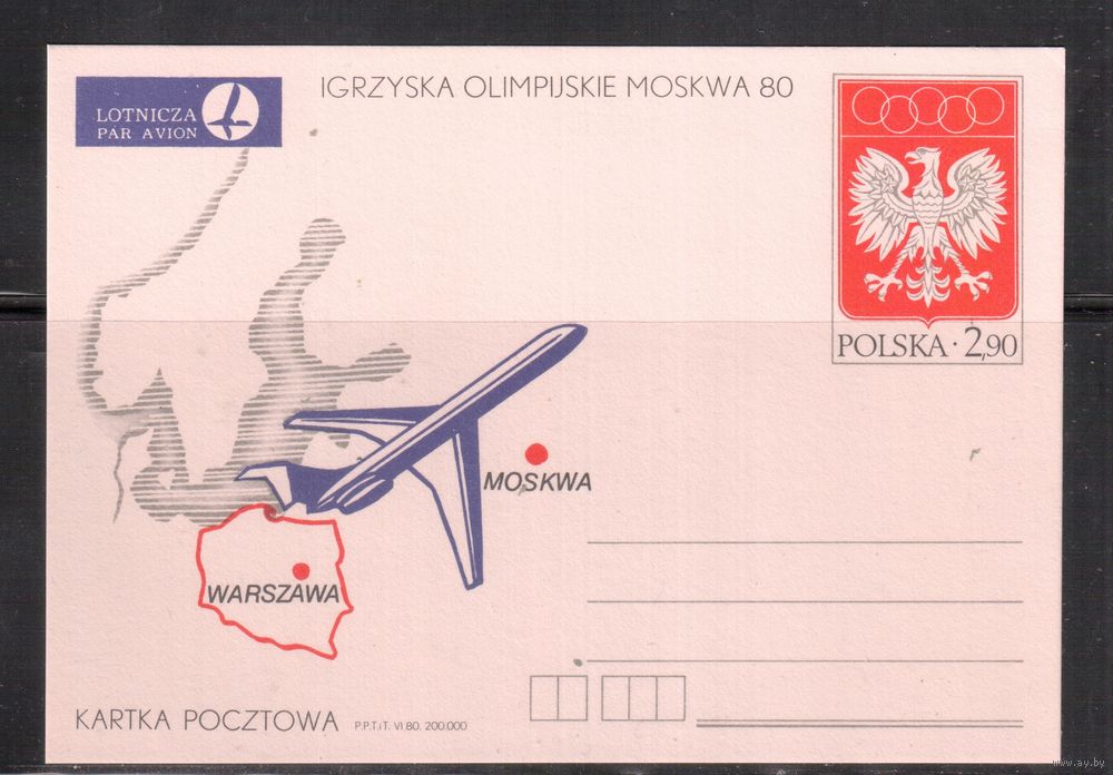 Польша-1981, Спорт, ОИ-1980, карточка с оригинальной маркой