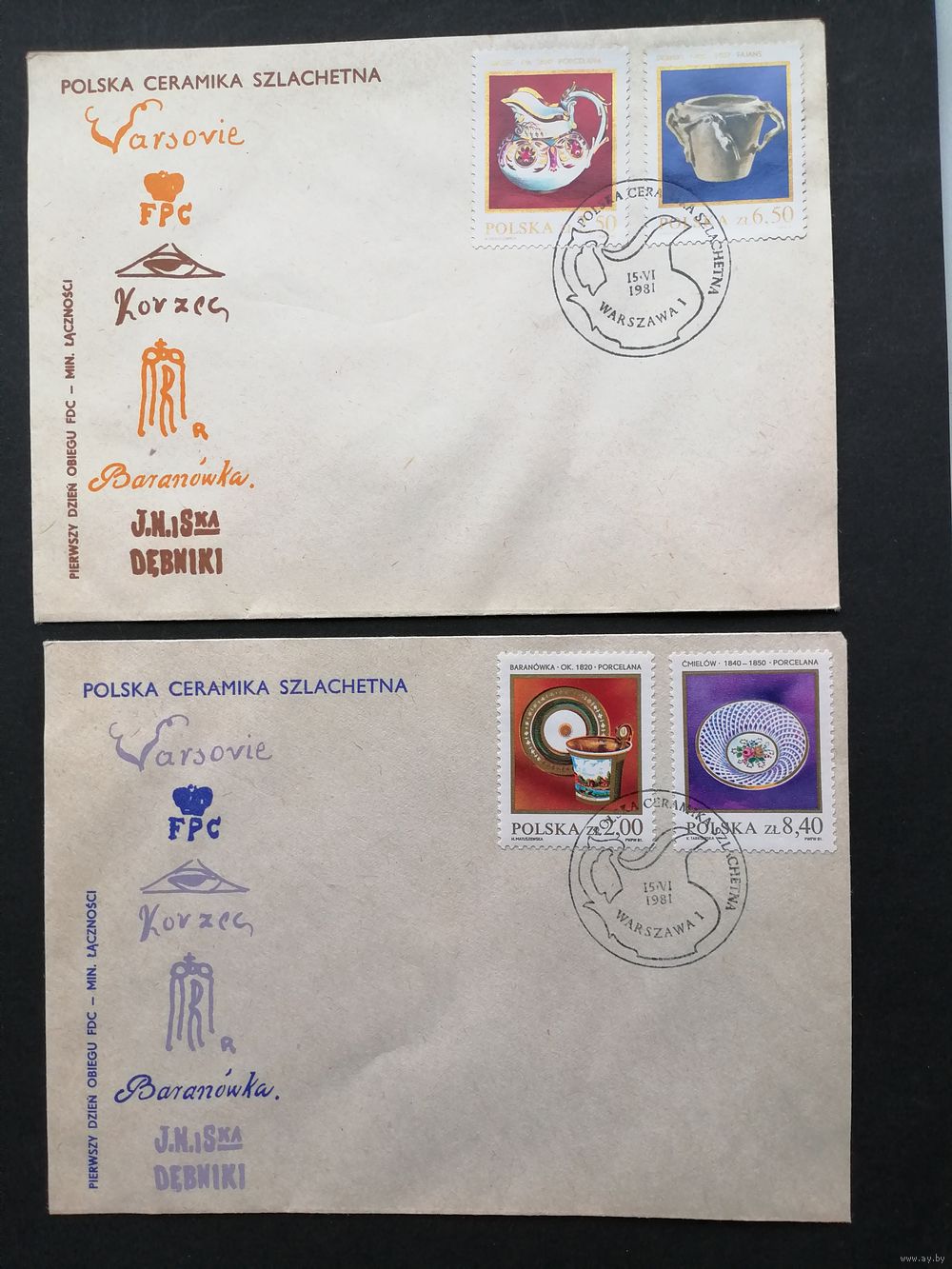 Польша 1981 Три КПД с полной серией марок "Фаянс и фарфор" (спецгашение) Mi.2739-2744 каталог 4.50 евро