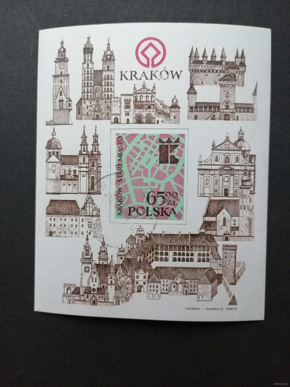 Польша 1982 Блок Mi.90 с маркой "Краков" (гашение с клеем) Mi.2843 каталог 1.50 евро