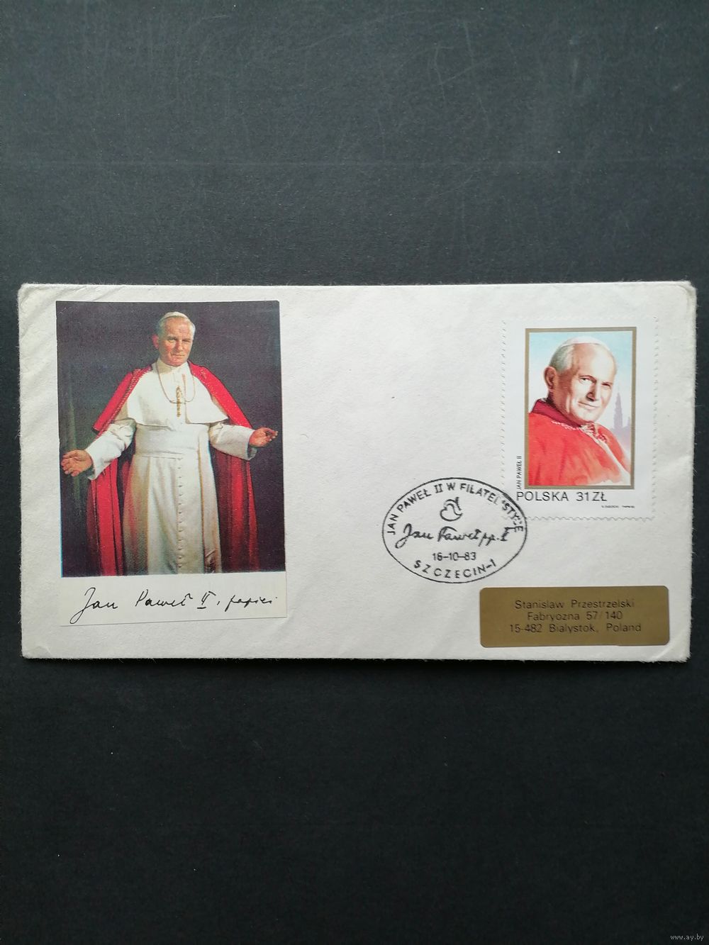 Польша 1983 Конверт посвященный филателистической выставке в Щецине "Папа Ян Павел II в филателии" с маркой из серии "II визит Папы Павла II в Польшу" (спецгашение Щецин) Mi.2868