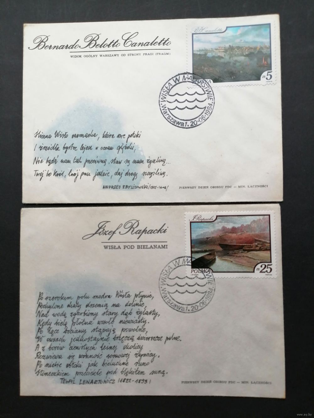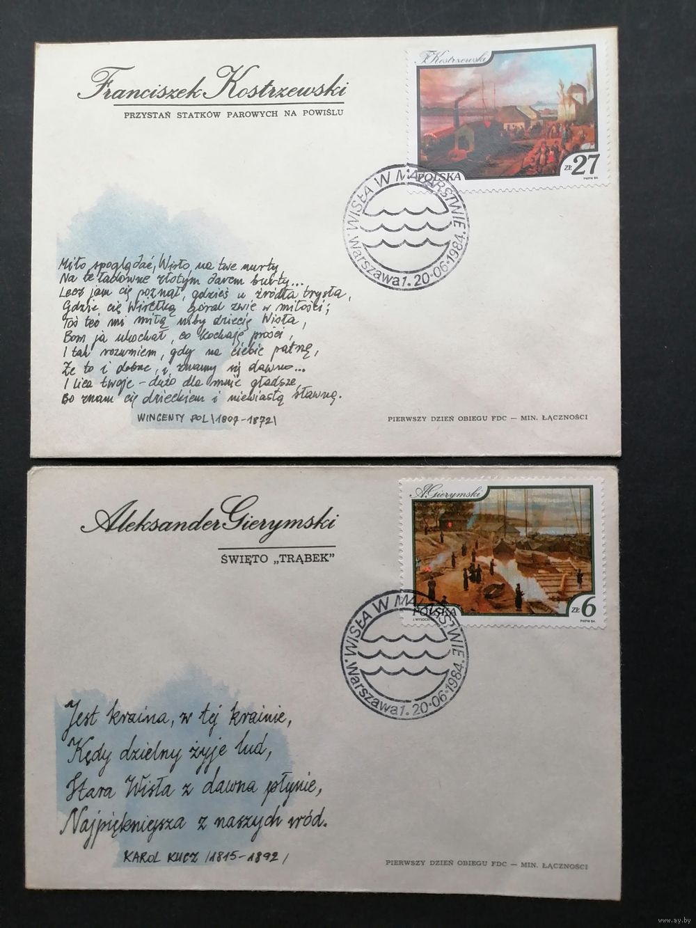 Польша 1984 Четыре КПД с полной серией марок "Висла на работах художников" (спецгашение) Mi.2921-2924 каталог 4.20 евро